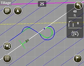 The machine automatically switches to a U-type turn if the guidance line is greater than a 45° angle to the headland. It switches back to a figure eight when the angle is 45° or less.