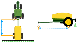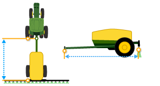 Some implements have a pivoting hitch that connects to the machine rear 3-point hitch. The offset for this pivoting location is required for the display to determine the implement movement behind the machine.