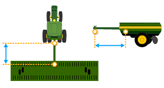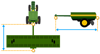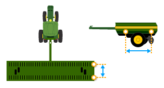 Some implements have a pivoting hitch that connects to the machine's rear 3-point hitch. The offset for this pivoting location is required for the display to determine implement movement behind the machine.