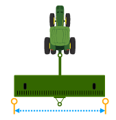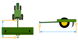 In-line distance from connection point to the implement center of rotation while in working position. Usually, this is where load-bearing parts of the implement make contact with the ground.