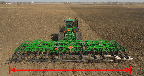 This measurement is width of area worked (tilled, planted, harvested, etc.) on a single pass through the field. For example, on a chisel plow, measure distance between each outside chisel, shovel, or sweep.