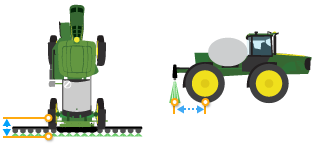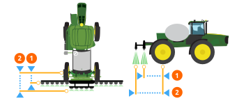 NOTE: If your Hagie sprayer is equipped with a rear boom but it is not an option, make sure that the rear boom is activated on the Hagie display and cycle the key. After activating, a second work point is available for the rear boom.