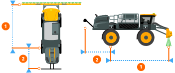 Front Boom (1) and Rear Boom (2) work points are the distance from the center of the rear axle to the location where product is applied.