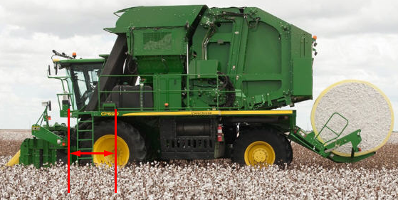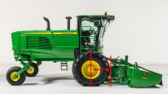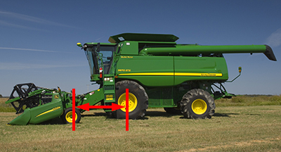 Measure the in-line distance from the non-steering axle to feeder house face plate.